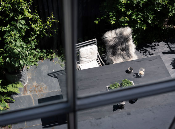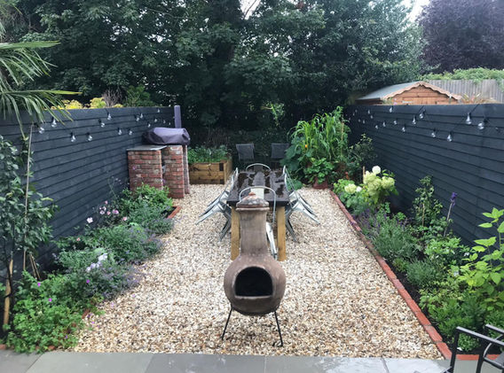 A small terraced garden transformed with a muted palette of cottage style planting and small fruit trees to soften the new entertaining area which flows seamlessly from the house.